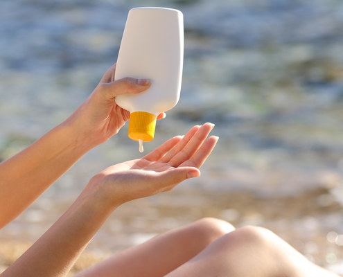 El uso de Bloqueador Solar tiene su papel en el LES en base al hallazgo que los rayos ultravioleta (UV) tipo A y tipo B (UVA y UVB), que se encuentran en la luz solar y en la mayor parte de las luces domésticas, pueden agudizar y/o prender un LESpreviamente dormido, particularmente en la piel o en el riñón. El razonamiento de cómo es que los rayos UV nos afectan, es que, al pegar directamente sobre nuestro cuerpo, rompen las células de la piel, exponiendo así los componentes de la célula, el núcleo y del citoplasma, al suero. Una vez en el suero, es mucho más fácil para las Inmunoglobulinas encontrar las moléculas para las cuales fueron creadas y así montar un ataque contra nuestro propio sistema. Basado en esto, se recomienda la aplicación de Bloqueador Solar con un Factor de Protección Solar (FPS) mayor a 50, que proteja contra los rayos UVA y UVB (Amplio Espectro o AE), en áreas expuestas a la luz. Se debe aplicar después del baño por la mañana y cada 4 horas hasta las 17 horas, esto sin importar si estas dentro o fuera de casa u oficina. Si vas a la playa, alberca o de día de campo, se recomienda evitar las horas de máxima intensidad solar y aprovechar de estas locaciones en las primeras horas de la mañana y en las últimas horas de la tarde. En este caso, el bloqueador solar se de aplicar cada 2 horas y después cada vez que salgas del mar o alberca (a pesar de que el contenedor diga que el bloqueador es a prueba de agua).